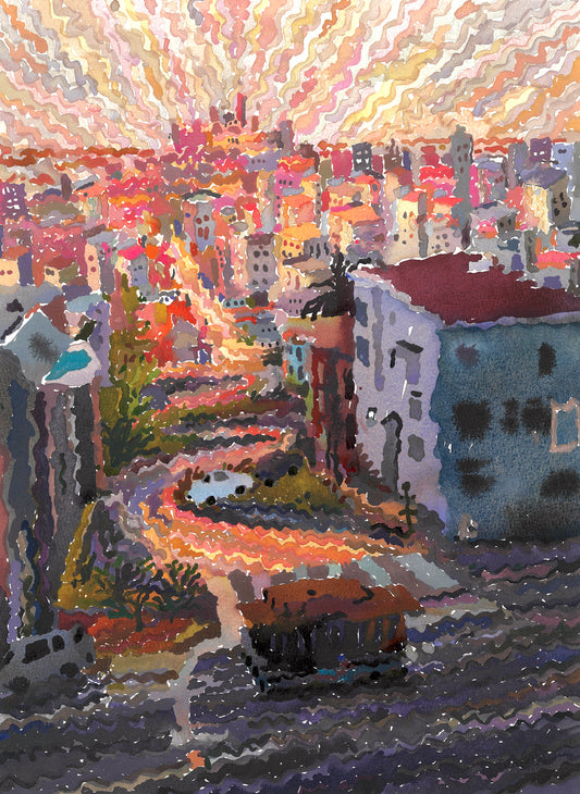Los Angeles City Watercolor Painting by Tanbelia
