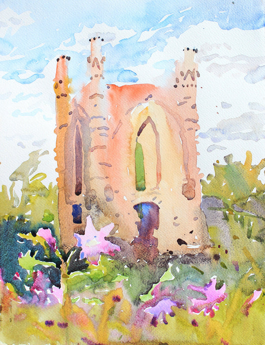 Novomalyn Castle in Ukraine Watercolor Painting by Tanbelia