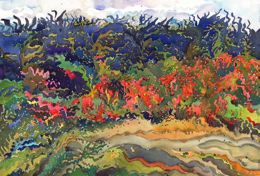 Poinsettia Flower Watercolor Painting, Nahm Dong Park in Luang Prabang by Tanbelia