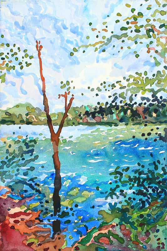 Quarry Lake Watercolor Original Framed Painting by Tanbelia