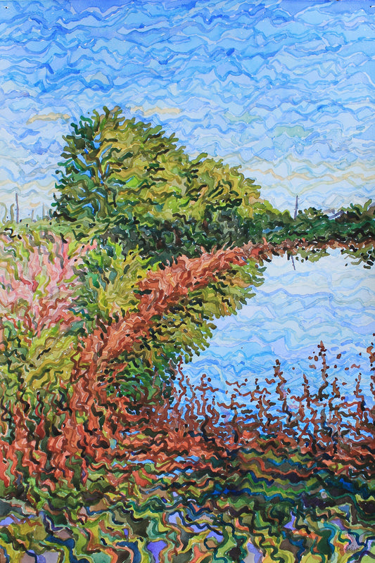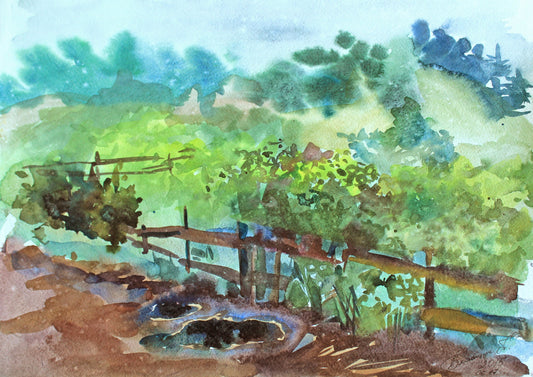 Summer River Landscape Watercolor Original Painting by Tanbelia