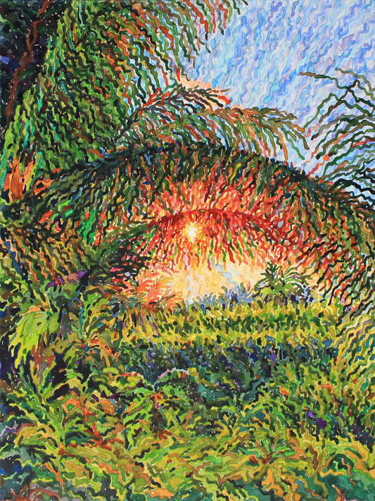 Sunrise in Rice Field in Bali Watercolor Original Painting by Tanbelia