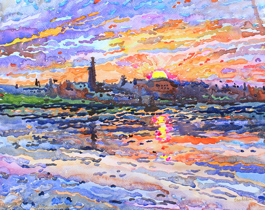 Sunset Watercolor Painting by Tanbelia