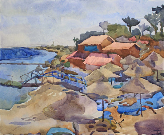 Tropical Landscape Watercolor Painting by Tanbelia
