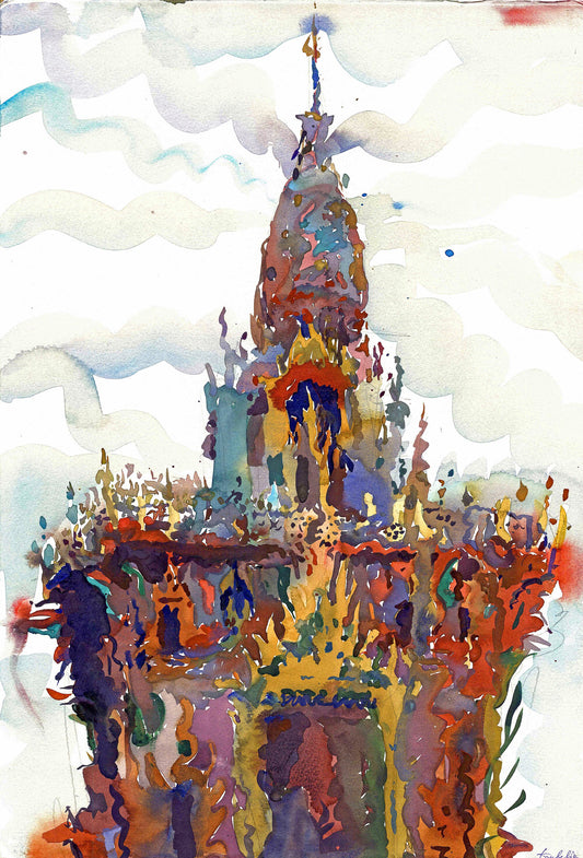 Wat Arun Buddhist Temple Watercolor Original Painting by Tanbelia