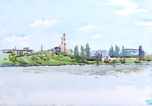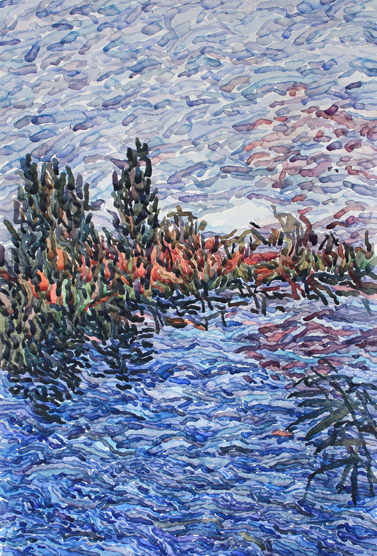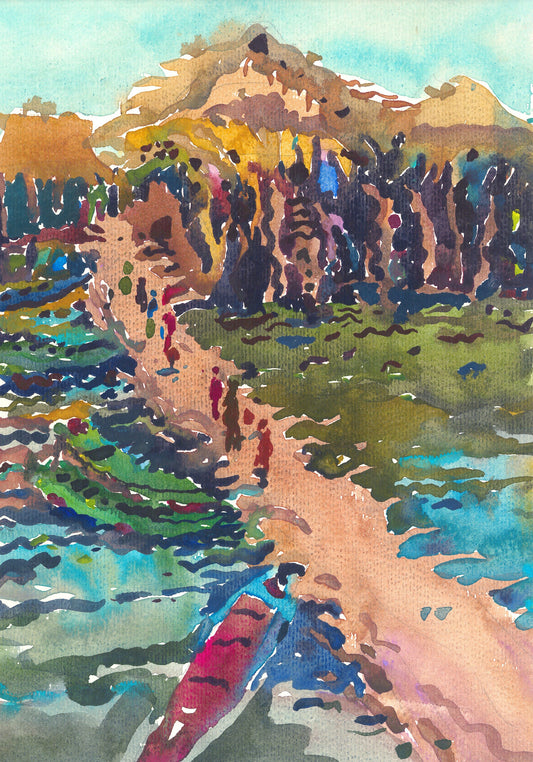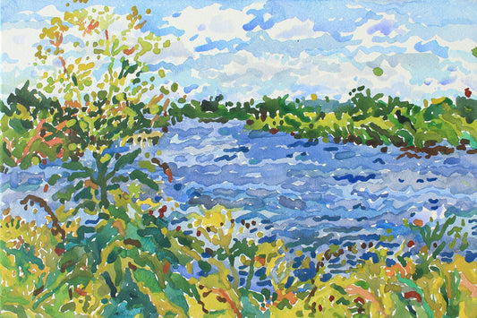 Blue Lake Watercolor Original Painting by Tanbelia