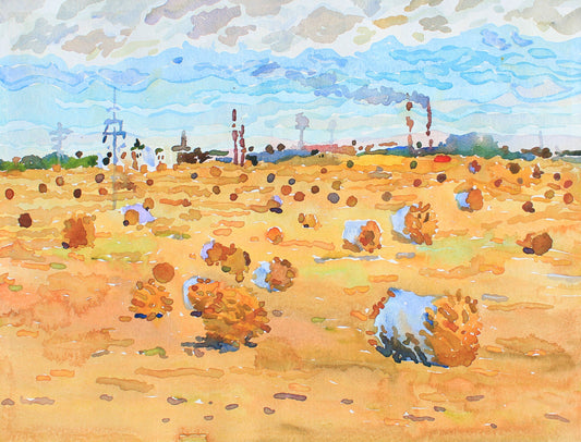Bale of Hay Watercolor Original Painting by Tanbelia