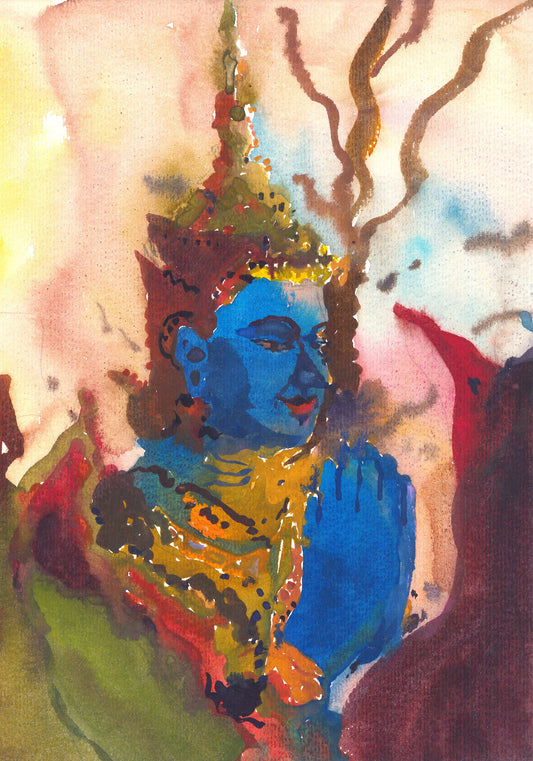 Blue Buddha Painting, Buddha Wall Art Painting, Watercolor Portrait Wall Art, Religious Art by Tanbelia