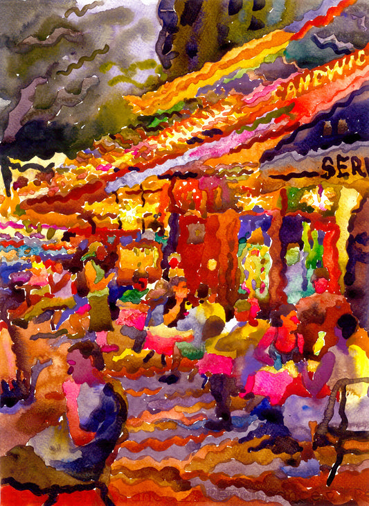 Cafe le Dome in Paris Watercolor Painting by Tanbelia