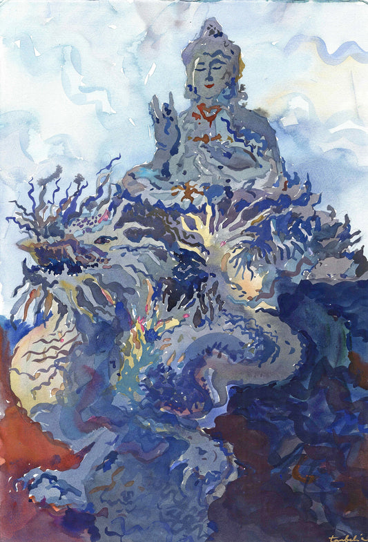 Goddess of Mercy Temple in Chiang Rai Watercolor Original Painting by Tanbelia