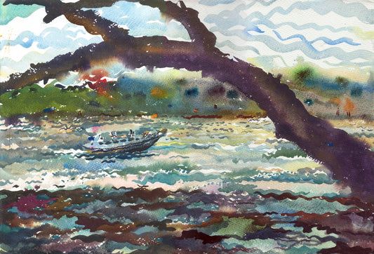 Green River Watercolor Original Painting by Tanbelia