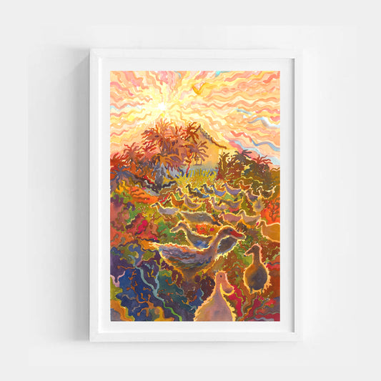 Ducks in Ubud Rice Field Print by Tanbelia