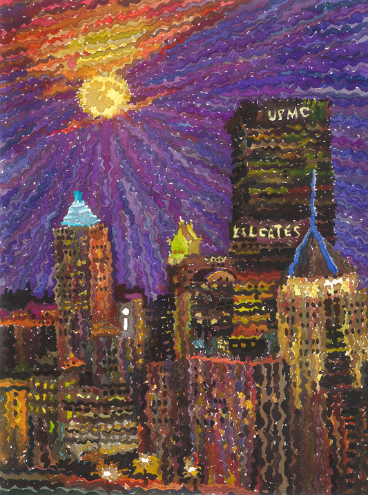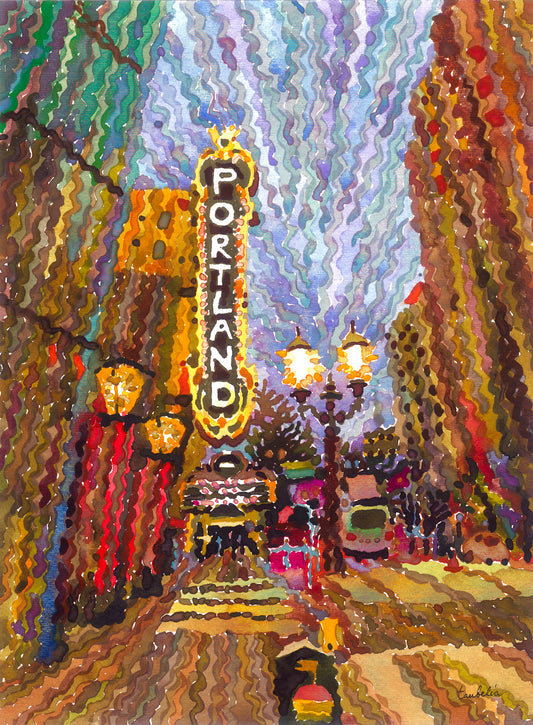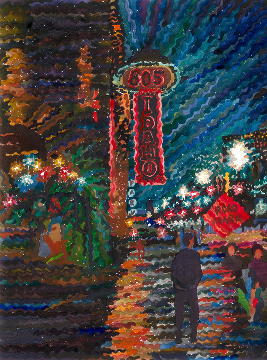 Boise Downtown at Night Watercolor Painting by Tanbelia