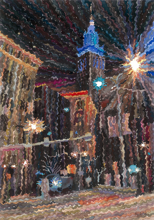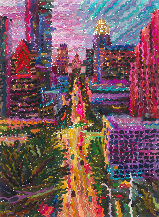 Rainy Manhattan Watercolor Painting by Tanbelia