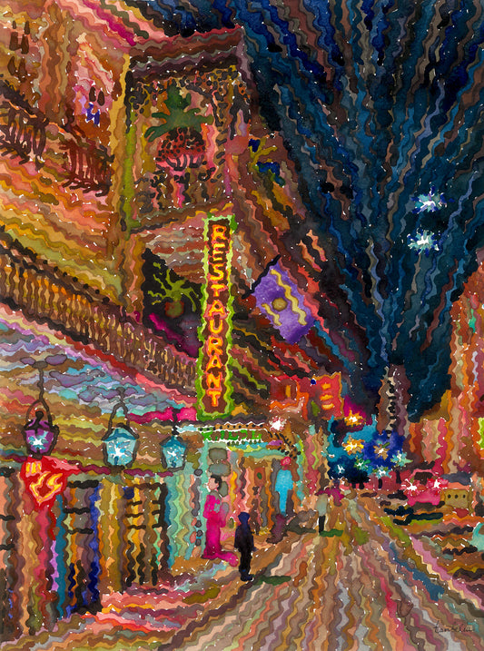 Bourbon Street in New Orleans Watercolor Painting by Tanbelia