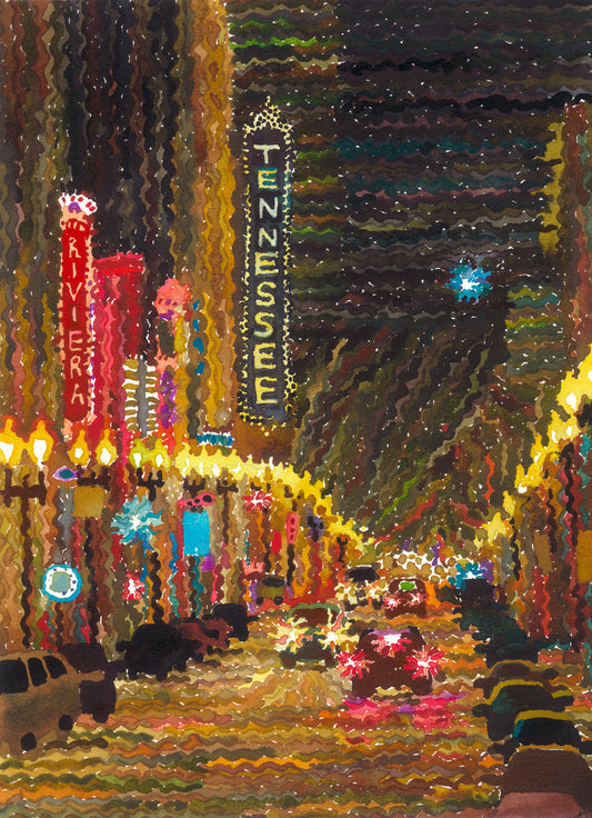 Boise Downtown at Night Watercolor Painting by Tanbelia