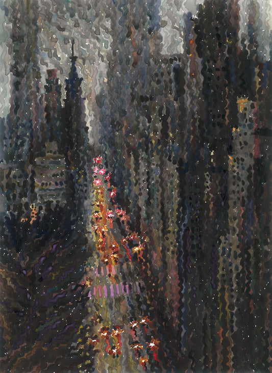 Rainy Manhattan Watercolor Painting by Tanbelia