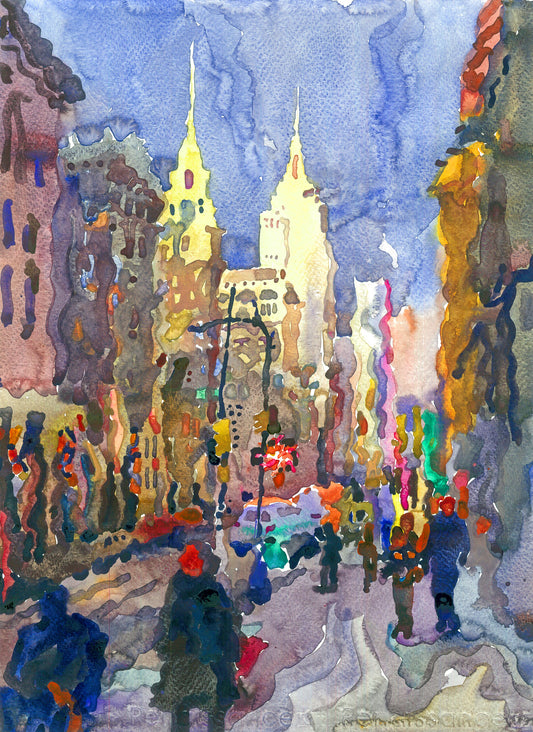 Empire State Building in New York City Watercolor Painting by Tanbelia