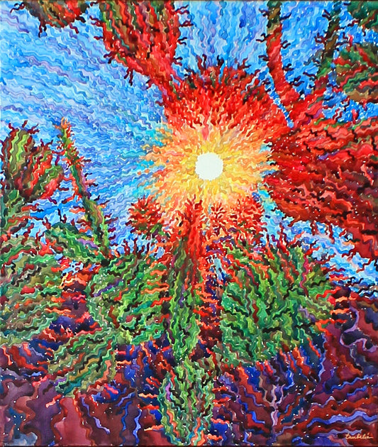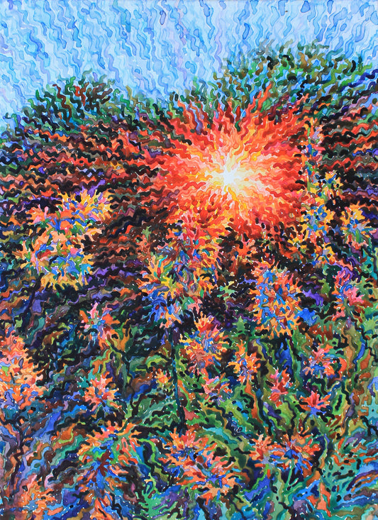This watercolor painting collection includes watercolor on a canvas paintings, floral paintings, artistic water color in a psychedelic style. See nature through the prism of water. Wavy lines are water, nature waterflow which reminds trippy art.