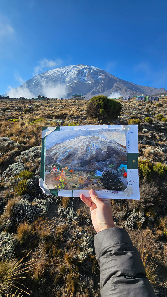 Klimanjaro Mountain Watercolor Painting - Exclusive