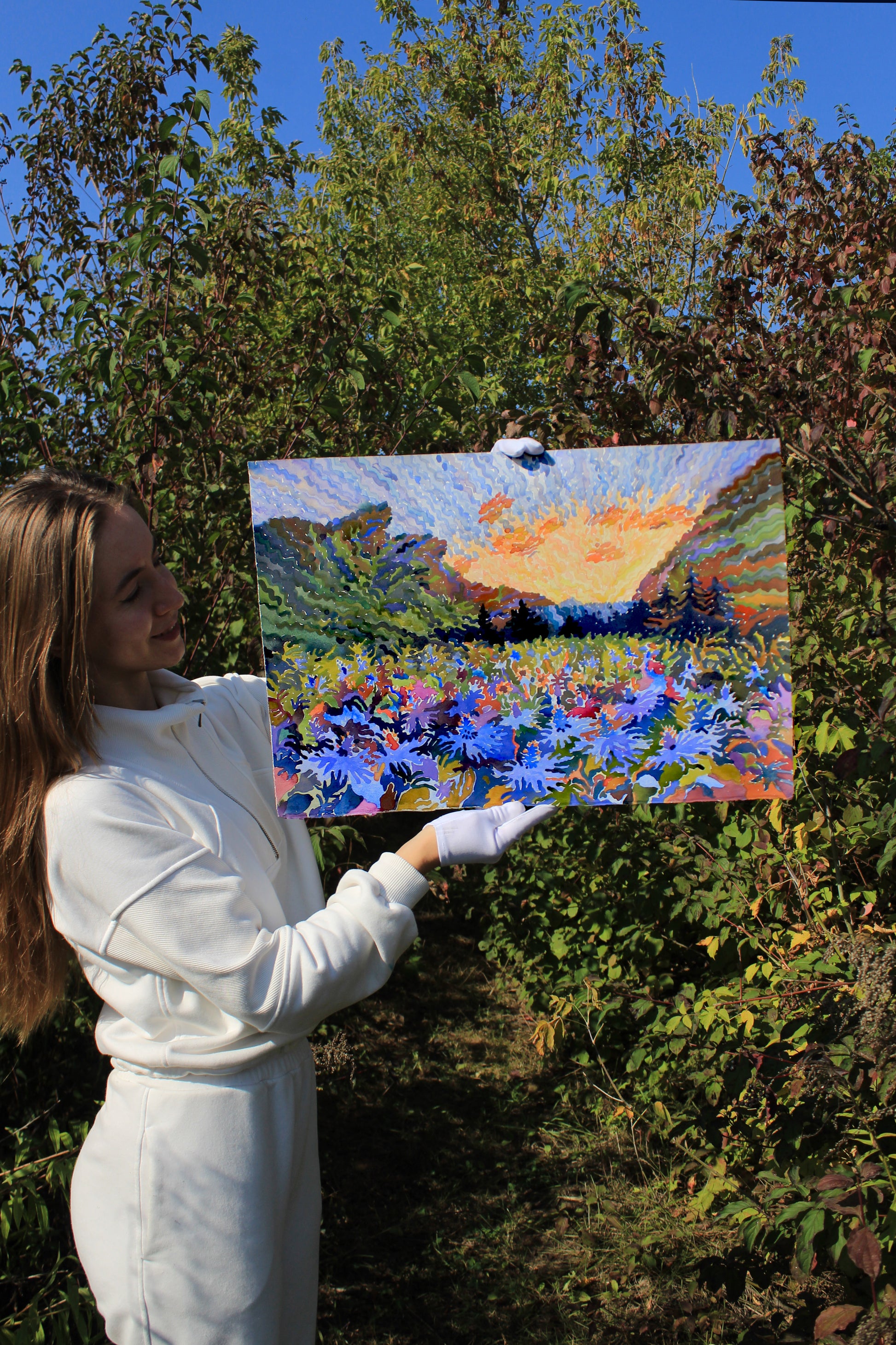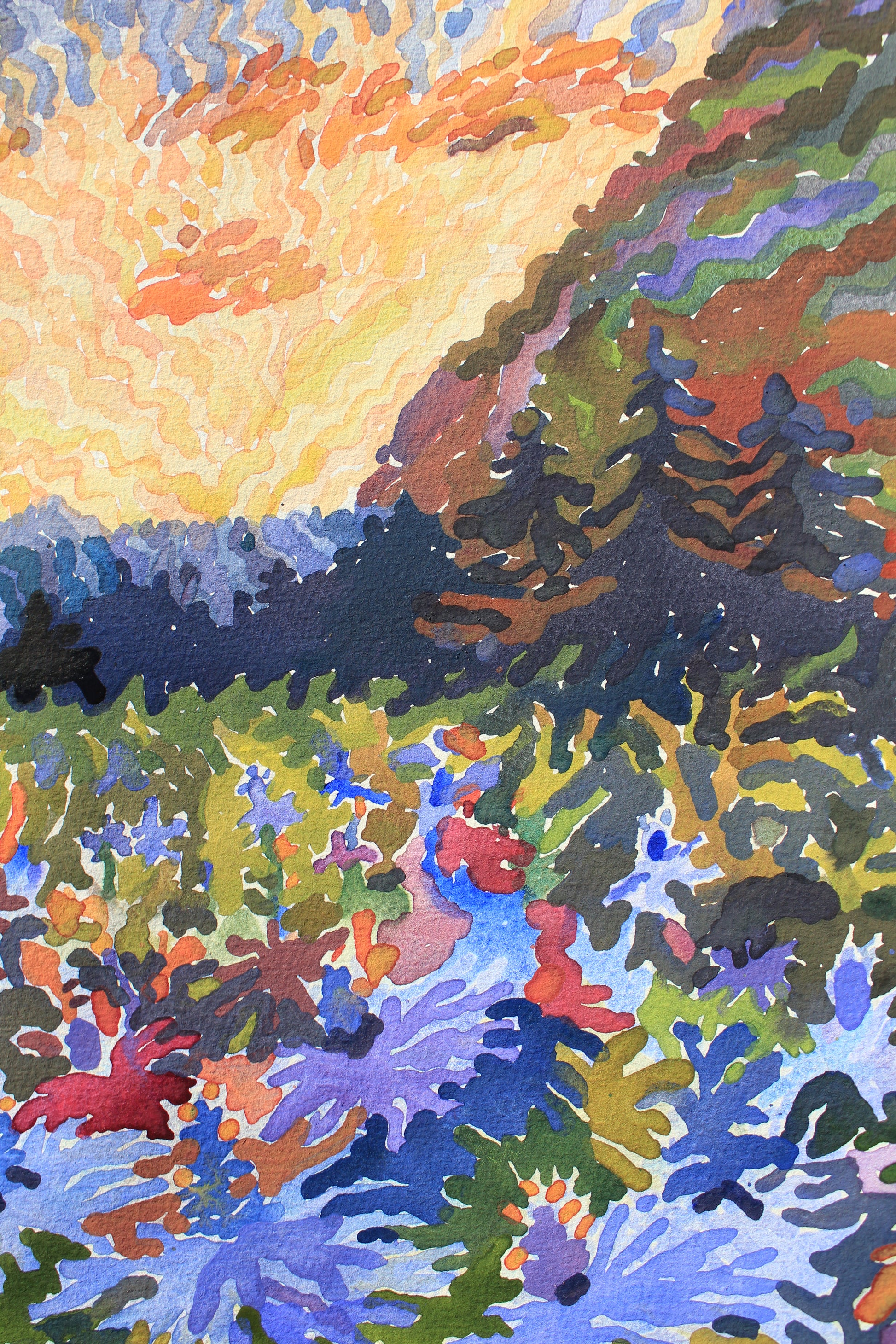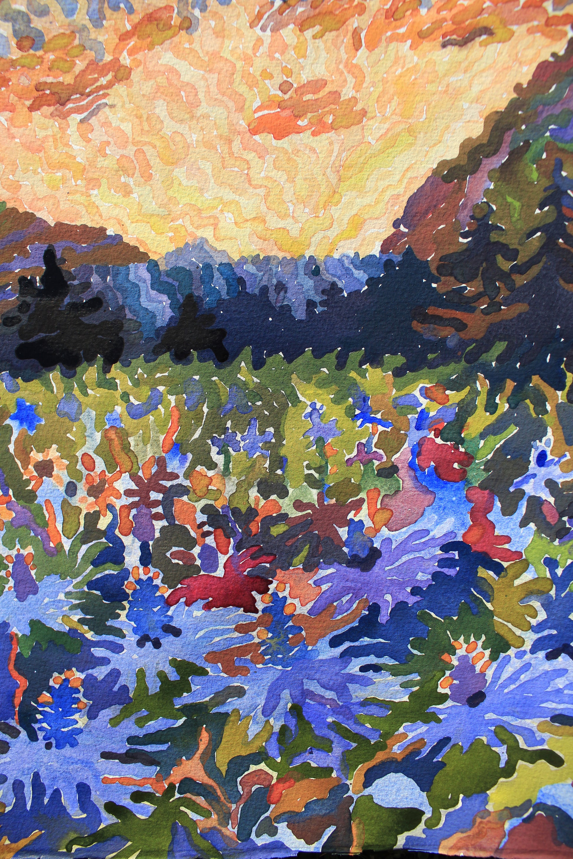 Materials: watercolor paints, watercolor paper, watercolor brush.