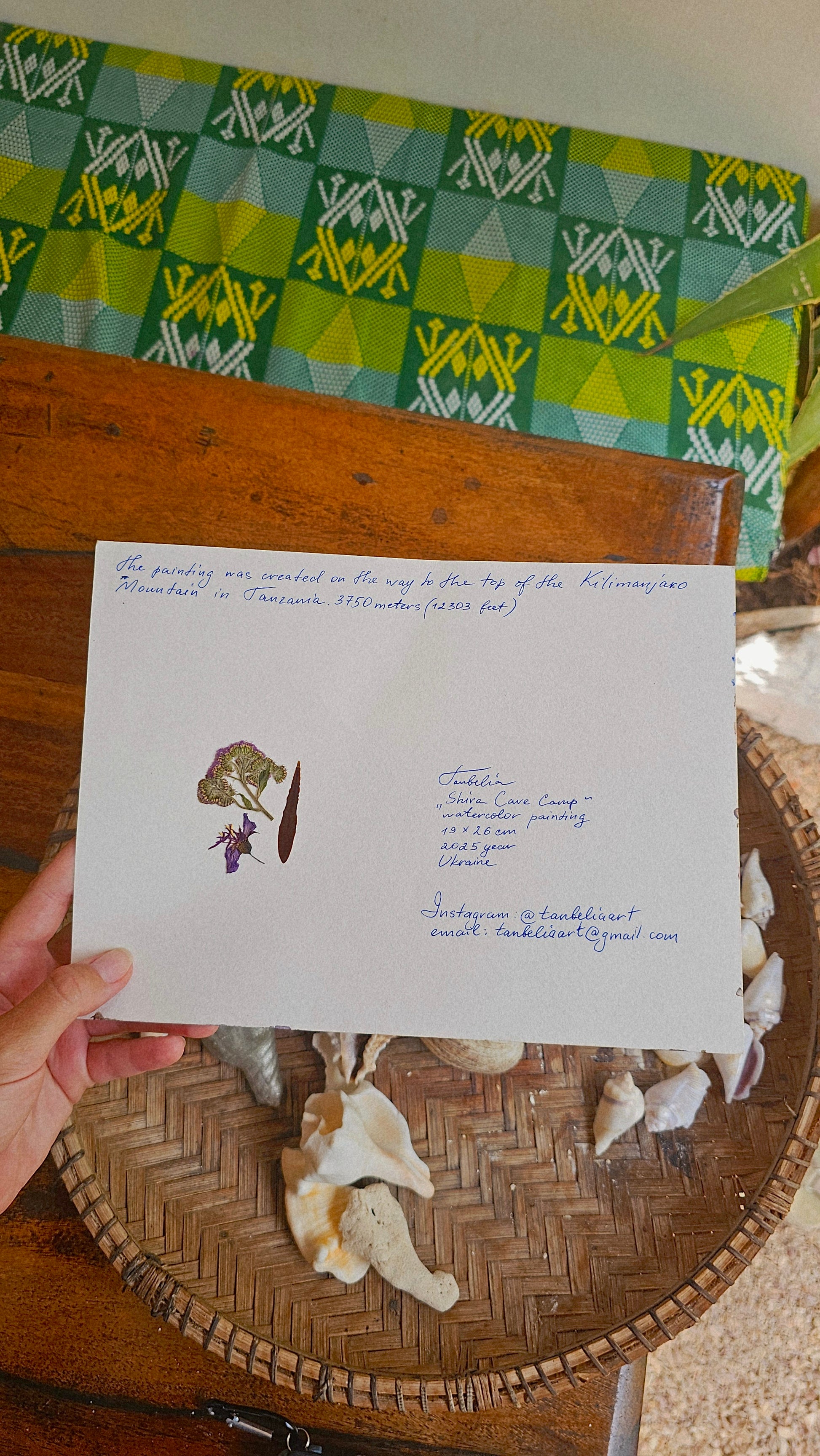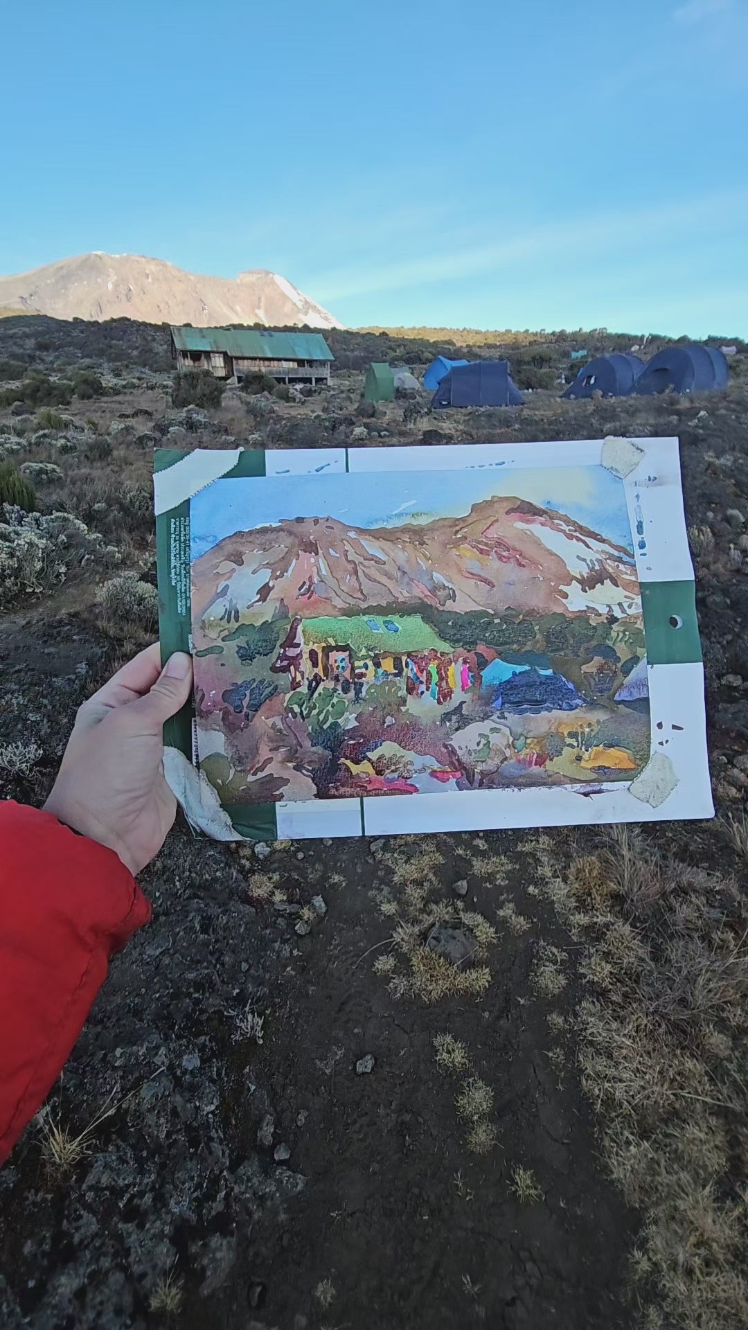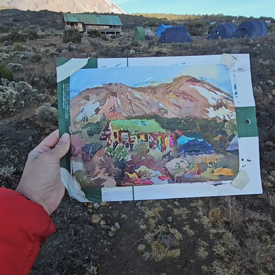 This painting was created on the way to the top of the Kilimanjaro Mountain in Tanzania at an altitude 3750 meters (12303 feet).