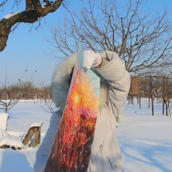 In this painting, I depicted a summer sunset in a wavy impressionist style. White campion flowers that became blue under the light influence. Their delicate petals and branches caught and illuminated by the sunrays. Behind them, ripe wheat spikes in gold and amber tones. I aimed to depict the moment through the prism of water, let the viewer feel light shimmers, how air trembles, and how summer lingers just a little longer before night arrives